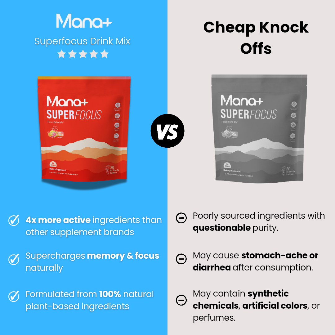 Join thousands of customers who've supercharged their productivity with Mana+ Superfocus Drink Mix